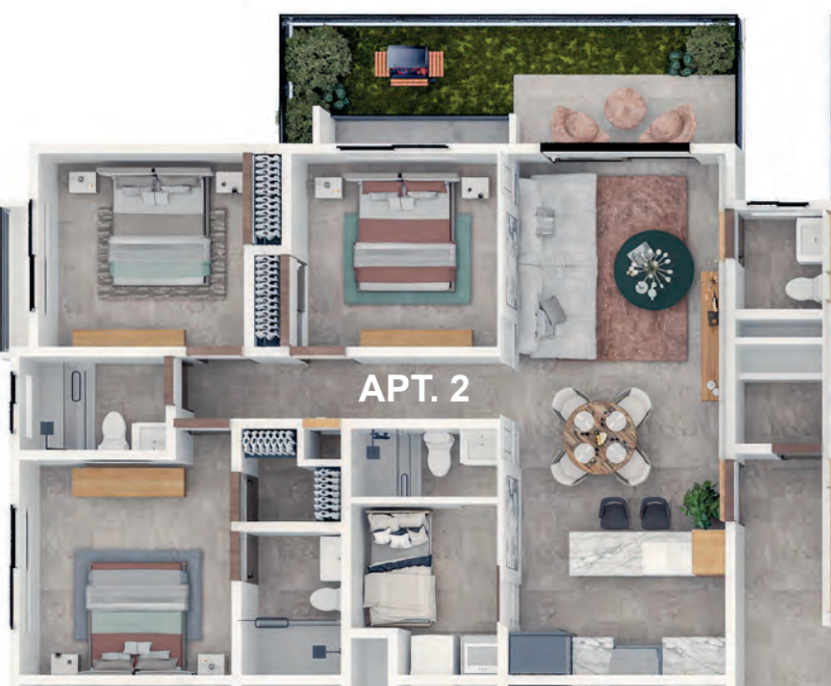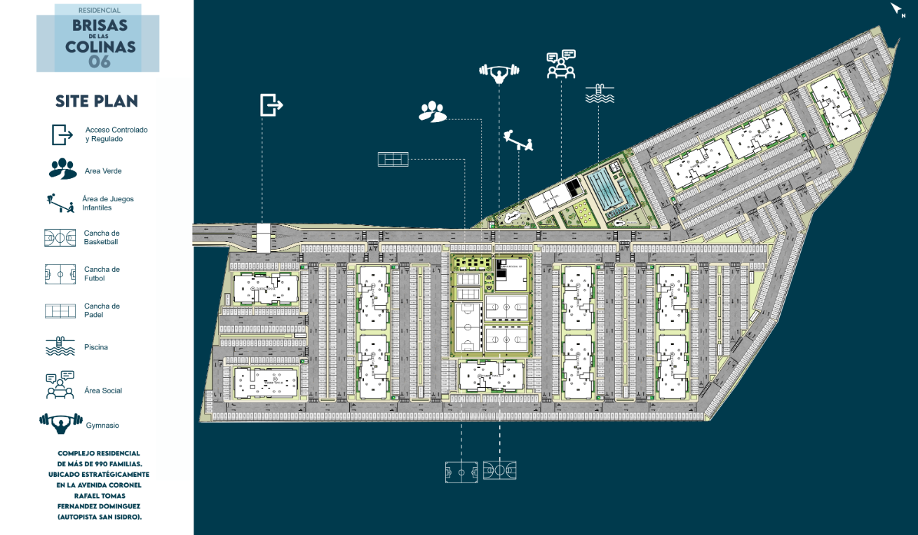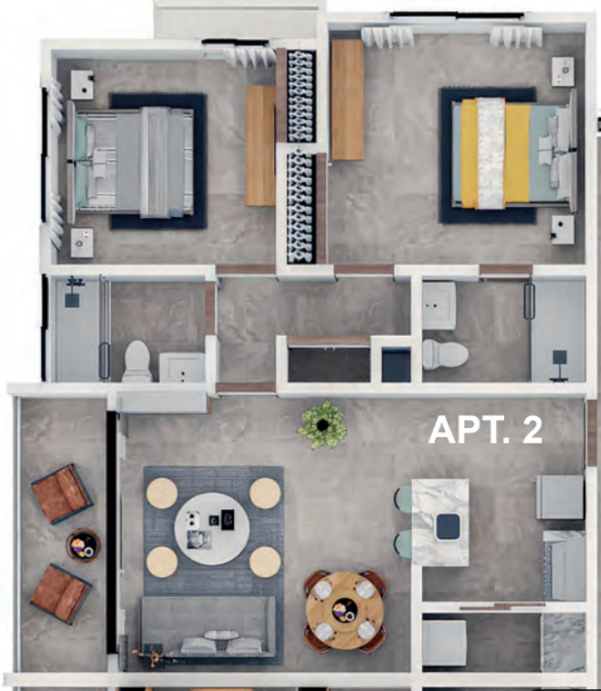 11 niveles de altura con 66 apartamentos por torre 6 apartamentos por nivel, ideal para una comunidad controlada 2 ascensores de última generación Apartamentos de 2 y 3 habitaciones.